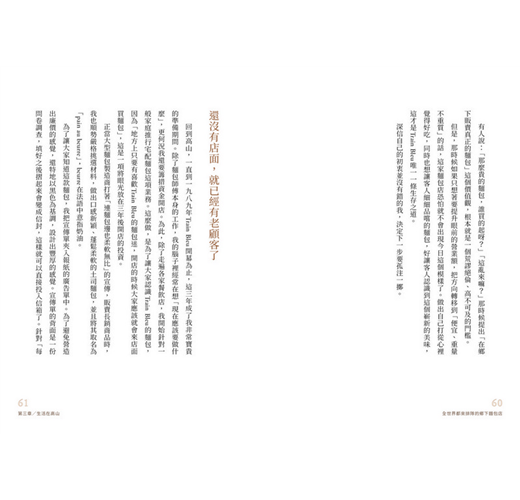 這本書並不是專門談論經營的指南書。而是我這個每天烤麵包烤了二十八個年頭的麵包師傅,希望能將這一路走來的心路歷程傳遞出去,讓手上拿著這本書的讀者找到面對工作的方法,或是對「某件事的靈感」。