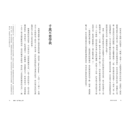 每聽到這種話,我就會十分得意,自覺真的把孩子教得很好,以為我的孩子會永遠一帆風順。……
