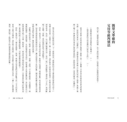 「若你是對於一般的教養書中那些難以達成的成功經驗感到厭倦的家長,我很推薦此書,在本書中,你能看出教養上的問題,並獲得實際的建言。」
