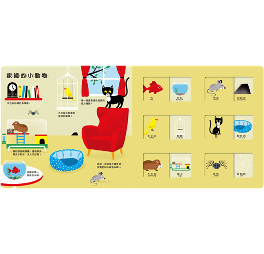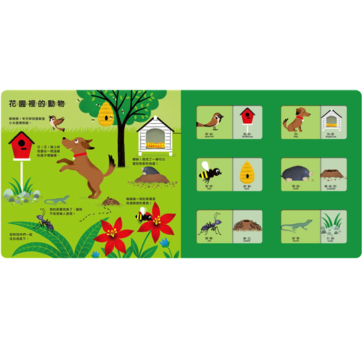 中英單字對照,圖文搭配玩中學,不知不覺中認識各個動物的中英文名稱。