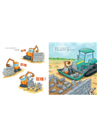 碰!推土機開始拆掉圍牆,小小挖土機努力想幫忙,卻被卡住了;接下來,吼!裝載車把不要的東西粉碎,小小挖土機也想幫忙,卻翻了個大筋斗;轟隆隆!清倒車努力的搬運,小小挖土機也想幫忙,卻擋了大家的路;最後反鏟挖土機開始挖洞、起重機開始架橋,小小挖土機也想幫忙,但總是幫不上忙……