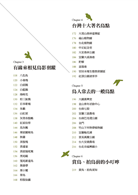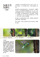 收錄包含稀有少見的帝雉、山鶺鴒;台灣特有種藍鵲、白耳畫眉、冠羽畫眉;金門獨有的夏候鳥栗喉蜂虎、中大型的猛禽魚鷹與黑鳶等等,本書皆以高畫質照片呈現牠們美麗的身影與姿態。