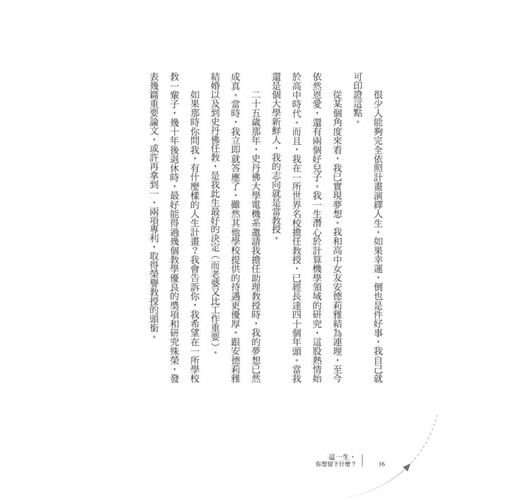 如果那時你問我,有什麼樣的人生計畫?我會告訴你,我希望在一所學校教一輩子,幾十年後退休時,最好能得過幾個教學優良的獎項和研究殊榮,發表幾篇重要論文,或許再拿到一、兩項專利,取得榮譽教授的頭銜。