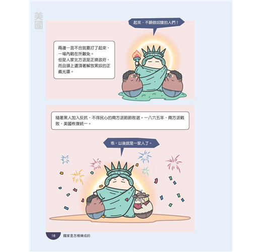 看完這套書,就可以了解現在世界各個國家是怎麼從零到有,建國時有什麼樣的心路歷程,最後又是怎麼樣發展到現在的規模。探索這些過程往往充滿驚奇,你會發現,就算是大如美國的世界霸主,都曾經只是小小的殖民地,有著弱小的曾經,有著跌跌撞撞的過去,甚至還有許多國家是陰錯陽差登入世界舞臺的呢!