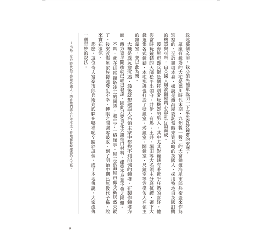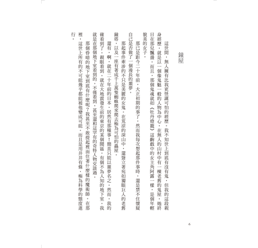 地點是長崎縣被群山所環繞的鄉下,從K這個小鎮還要再走半里才能抵達山腳。我奉叔叔之命,自長崎市專程來到這片山區。事先已在K鎮的旅館訂妥房間,反正不是急事,我就當作散步,在無人的鄉間小路慢慢走向目的地的那座鐘屋。