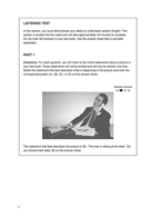 音檔內容:每一個音檔即一個 Part 的題目,並以台灣考生較不熟悉的英、澳口音唸出。