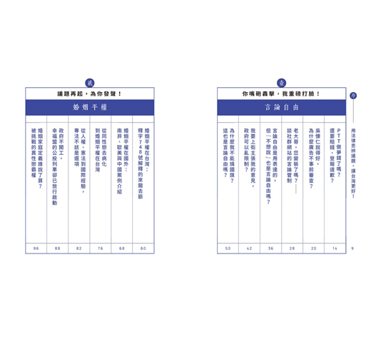 從言論自由、勞動權益、婚姻平權到社會褔利──