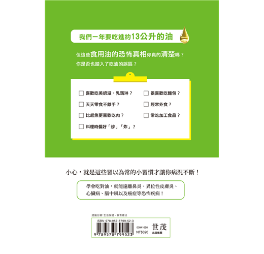 ★★★真是讓我上了一課。我很困擾,不知道炒、炸時該使用哪些油,還有也理解到平常在使用的油有多糟。我很想問作者炒、炸時要使用哪些油。
