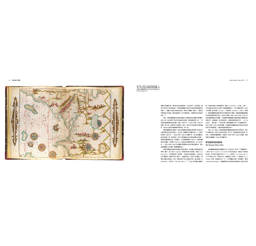 ▋中文世界首次重現大英圖書館館藏:一五五○年巨幅世界地圖這幅一五五○繪製的世界地圖,以實際用於地中海海域與東大西洋的航海圖為架構,由四張羊皮紙拼成,尺寸達135×215公分,採精緻細膩的筆法手繪而成。圖上不僅有城市、君王、異族、動物、船隻與海怪的圖案,並參考馬可波羅、哥倫布等人作品,特別撰寫嵌入裝飾框中的二十六段說明,襯托出亨利二世的博學。該地圖引人致勝之處,在於不亞於民族誌的精美插圖,其中於巨大南方大陸所做的描繪──有些人認為圖上南方大陸透露出歐洲人對澳大利亞的「早期發現」,早於傳統以威廉.楊頌(Willem Janszoon)在一六〇六年發現澳洲的看法。