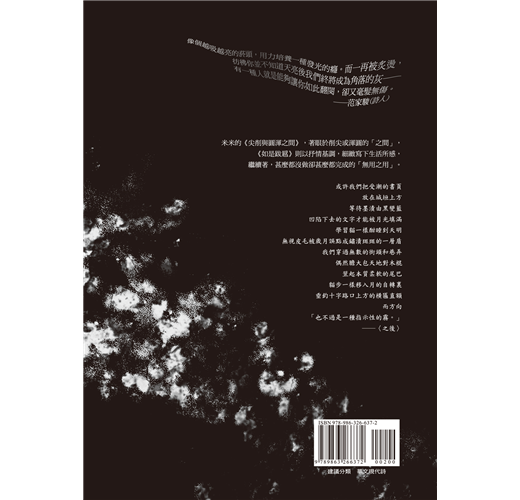 是啊,你究竟還要我怎樣。我可以想像自己與那些讀著你的人們在彼此眼中一再若隱若現,慢慢因為離群而漸漸聚在一起。像個越吸越亮的菸頭,用力培養一種發光的癮。而一再被炙燙,彷彿你並不知道天亮後我們終將成為角落的灰―