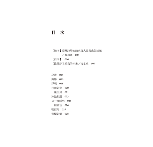 「吹鼓吹詩論壇」網站除了提供像是詩壇的「星光大道」或「超級偶像」發表平臺,讓許多新人展現詩藝外,還把優秀詩作集結為「年度論壇詩選」於平面媒體刊登,以此留下珍貴的網路詩歷史資料。二○○九年起,更進一步訂立「臺灣詩學吹鼓吹詩人叢書」方案, 鼓勵在「吹鼓吹詩論壇」創作優異的詩人,出版其個人詩集,期與「臺灣詩學」的宗旨「挖深織廣,詩寫臺灣經驗;剖情析采,論說現代詩學」站在同一高度,留下創作的成果。此一方案幸得「秀威資訊科技有限公司」應允,而得以實現。今後,「臺灣詩學季刊雜誌社」將戮力於此項方案的進行,每半年甄選一至三位臺灣最優秀的新世代詩人出版詩集,以細水長流的方式,三年、五年,甚至十年之後,這套「詩人叢書」累計無數本詩集,將是臺灣詩壇在二十一世紀中一套堅強而整齊的詩人叢書,也將見證臺灣詩史上這段期間新世代詩人的成長及詩風的建立。