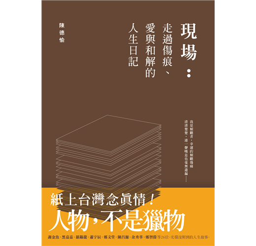 但所幸在新聞史的邊陲地帶,這幾年卻出現了零星幾點星火,少數記者踽踽獨行,以人物書寫的形式讓新聞報導閃爍著隱隱約約的文學火苗;走在這列隊伍前面的人有董成瑜、房慧真等,踵接其後的就是《現場》這本書的作者陳德愉。她們都是新聞界少數會說故事的人,都有記者的敏銳,都有小說家的細膩,她們寫的那些人物故事都是新聞,也都是文學。