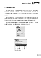 ◆ 專案範圍管理:利用Project的專案分解功能,使用者可以方便地對專案進行分解,並可以在不同層次上進行資訊的匯總。