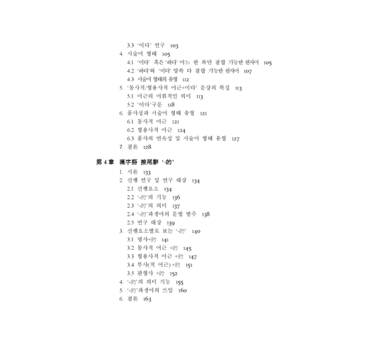이 책은 최근에 필자가 한국어 한자어 및 한자어 교육에 관해 연구한 논고를 엮은 논문집이다. 한자어에 대한 연구는 지금까지 한자어의 단어 형성, 구조를 중심으로 많이 되어 있으며, 그것들은 국어 형태론 안에서 다루어져 왔다. 국어 형태론 안에서 이루어진 한자어 연구들은 고유어의 문법 체계 안에서 부분적으로 다루어졌거나 혹은 고유어와의 異同에 주안점을 둔 연구들이 주를 이루었다. 그러한 기존 연구의 성과는 중국어권 학습자를 대상으로 한 한국어교육 현장에서 유용하게 활용될 수 있는가 하면 그렇지만은 않은 것 같다. 그 이유 중의 하나는 기존 연구들의 논점이 중국어권 학습자들이 가려워하는 곳을 직접 긁어주지 못하기 때문이라 생각한다. 한국어교육에서 접하게 되는 대다수의 한자어는 한중 동형어이다. 이 책의 연구 자료에 의하면 한자어 1724개 중 그 대다수가 한중 동형어이다. 이는 한자어의 단어 형성에 있어서는 중국어권 학습자에게는 큰 문제가 되지 않는다는 것을 의미한다. 다시...