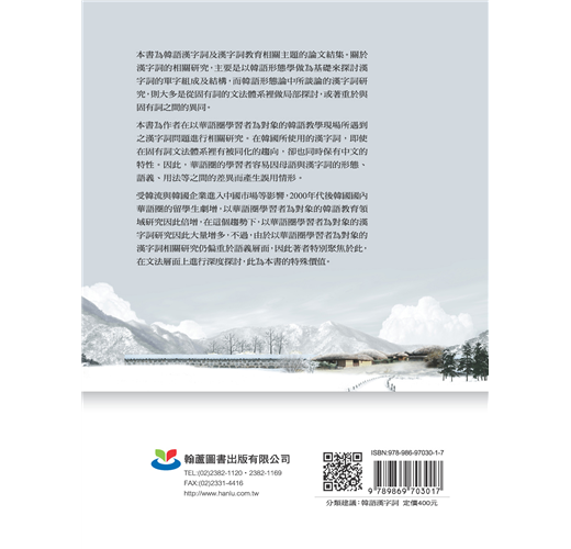 한류의 열풍과 한국 기업의 중국 진출 등의 영향으로 인해 2000년대에 들어서면서 한국 내 중국어권 유학생들이 급증하고, 이에 발맞추어 중국어권 학습자를 대상으로 한 한국어교육의 다양한 분야에서 연구들이 쏟아져 나오고 있다. 그러한 흐름 속에서 중국어권 학습자 대상 한자어 관련 연구도 속속 나오고 있다. 그런데 중국어권 학습자 대상 한자어 관련 연구는 그 주제가 의미적인 측면에 치우쳐져 있다. 따라서 이 책은 지금까지 심도 있게 연구되어 오지 못한 영역인 외국어교육으로서의 한자어의 문법적인 측면을 직접적으로 다룬 논문집으로서 연구 의의가 있다 하겠다.