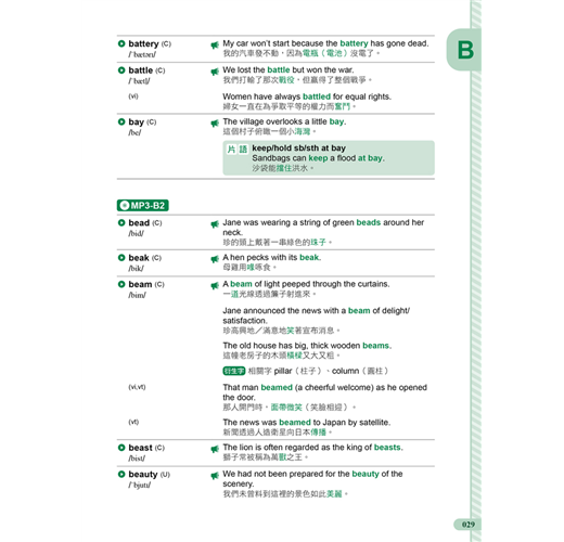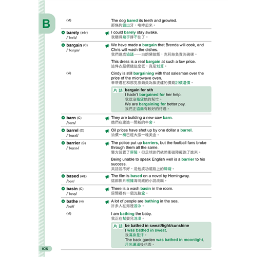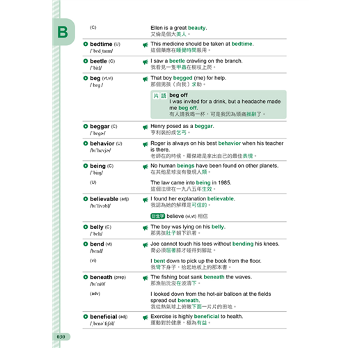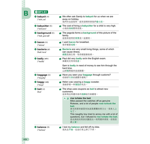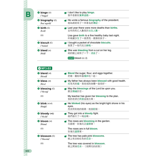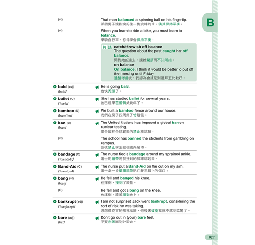 3. 藉由可數、不可數、常用單複數形、及物/不及物動詞、不同詞性、不同字義、衍生字、相關字和相關片語等方式,幫助考生多元學習、有效記憶!