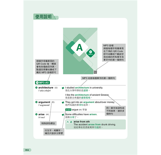 2. 外籍老師專業錄製音檔,搭配QR code 隨掃隨聽,收錄單字和例句(前有標示 📣 者),學習單字的同時,聽說技巧同步提昇!