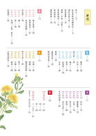 從二十四節氣感受季節的流轉變化,並用畫筆體會傳統日本特有的生活風情。像是位於春分前後的女兒節、在蜻蜓的季節進行盛夏問候、霜降的紅楓與石榴……等美麗的獨特景致。除此之外亦收入了日本賀年的吉祥物松樹、白鶴與鯛魚的繪畫技法,從季節的變化與繪筆,學習獨特的日式美學。