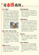 搭機及搭車資訊看板、購票、投幣、按鈕、插孔位置都有拉線指示。詳細介紹市區常見的10種交通工具,捷運、巴士、計程車、雙條車、單車、三輪車、遊船等,帶領旅客瘋遊泰國。