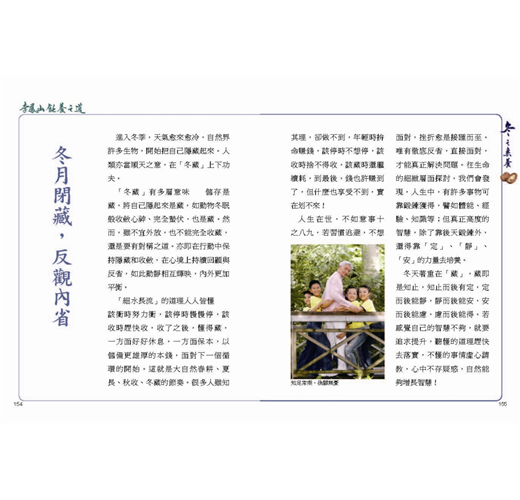冬月閉藏,反觀內省/冬養腎氣,四季無虧/冬日陰冷,避寒就溫/冬食淡素,防範疾病/冬令進補,養氣為主