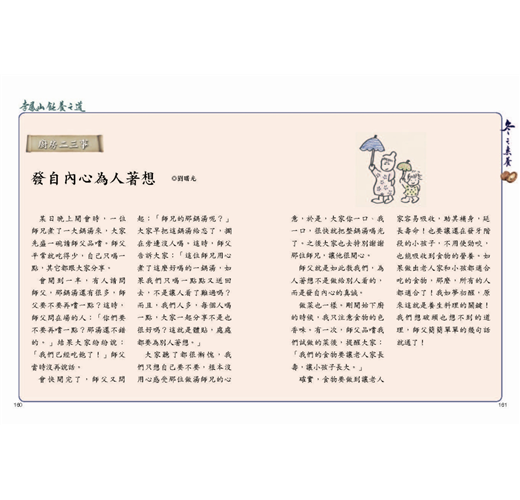 修煉人心的餐廳(溫光成)/格物精神(葉文玲)/物盡其用(李光盈)/在服務中落實助人(蔡金亞)/用食物傳遞愛心(王昭文)
