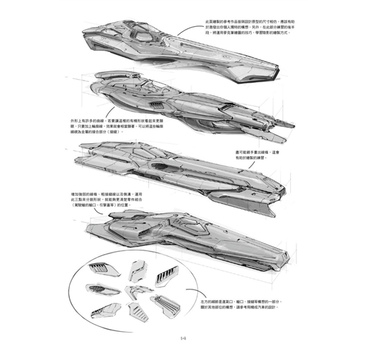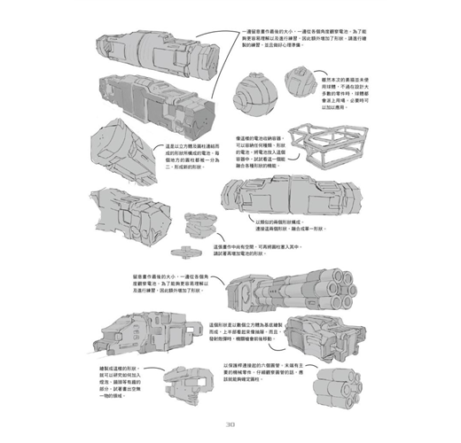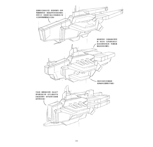 ◎以淺顯易懂的素描練習為基礎,添入「形狀語言」建構雛形,再逐步複雜化。