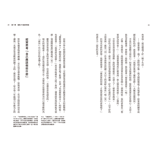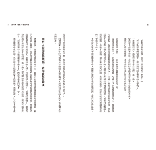 在心體智日漸成長茁壯的同時,我們對於未來的人生總是懷抱著各式各樣、多彩繽紛的夢想,卻也存在著複雜的不安與迷惘。14歲的心境就是如此微妙。但也因為如此,才會讓這段歷程更加特別難忘。而這也是每一個人都肯定會走過的一段路,包含那些大家奉為人生目標、在各種領域達成傑出表現的人們。