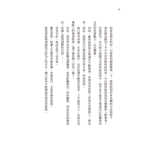 這本書讓讀者有機會一窺日本配音環境的堂奧。希望藉他山之石,了解台灣配音的環境的艱困,能有越來越多人重視這曾榮耀一時,如今已日薄西山的產業。預算不足、市場太小的狀況,其實不只配音界,而是發生在各行各業。然而在這種艱困環境底下,還是有那麼一小群人願意燃燒自己的熱血、用自己的人脈去打點外援,變出哪怕只有比平常好一點點的作品。像這樣的藝術家,我都很佩服、也值得大眾給予掌聲。