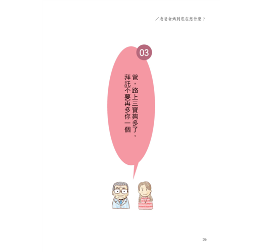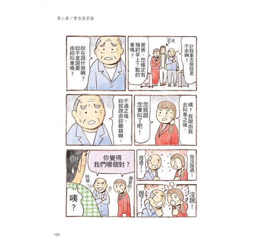 本書以漫畫和簡單文字,說明年邁雙親可能招人誤解的心態和行動,