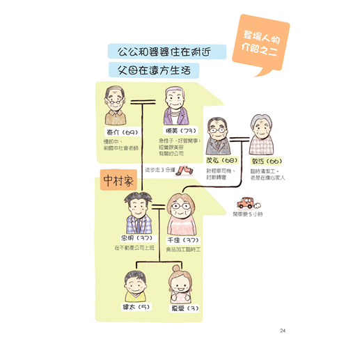 這本書會以漫畫和簡單的文章,說明年邁雙親似懂非懂及可能招人誤解的心態和行動。另外,書上也會刊登苦惱時能夠立刻實踐的建議和貼心的提示,既可以開心閱讀,還可以讓親子心意相通。
