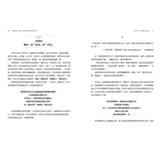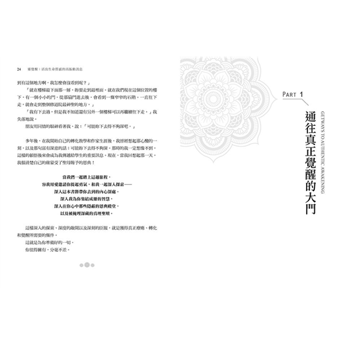 這是一趟流暢、易懂、清晰且令人興奮的靈魂轉化之旅。書中的內容一層一層鋪展開來,一個個概念依序堆疊、環環相扣。因此,當你閱讀本書時,會感覺自己像在爬一道迷人的階梯,一步步帶你通向更高處。