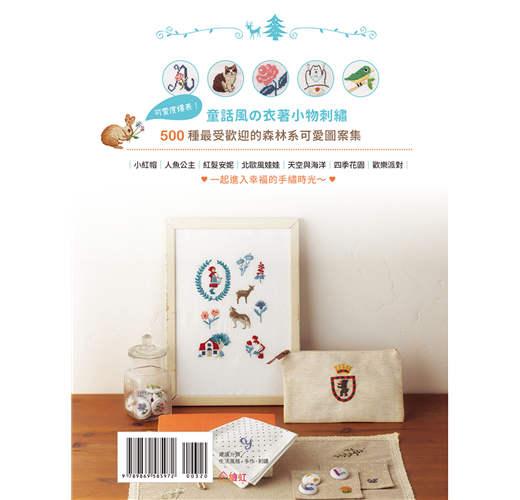 本書收錄多達500種以上由日本知名插畫刺繡作者群專為手作者設計出最愛的經典童話―大野狼的小紅帽、人魚公主、紅髮安妮和各種北歐風娃娃人物,還有可愛超萌的森林系動物、繽紛夢幻的四季花園和歡樂派對等,每一個小小圖案,能隨時應用在日常生活中,並可自由組合變化出千萬種專屬自己的造型圖案,獨特造型好看又實用。