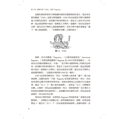 讀數學書籍的時候,就和這種「當場決定規則的Pageone」一樣。若想知道書中數學式中的x和y分別是什麼意思,就要往前翻翻這本書中這條數學式之前的內容,一定會有「將某某東西表示為x」之類的說明。要是沒有確認這一點,就會被「加手牌」,就算讀完這本書也不曉得書的內容在講些什麼。