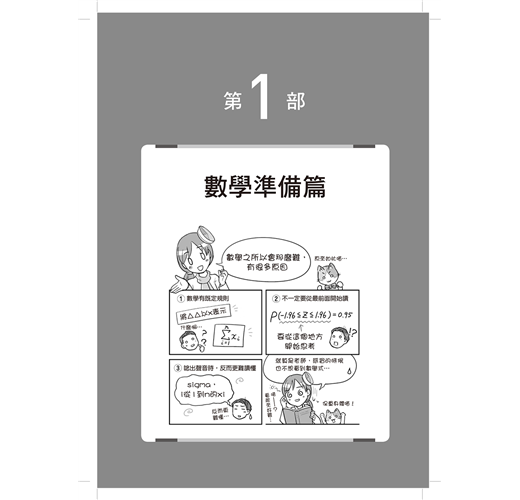 因此,在開始學習「統計的內在」前,本書準備了「數學準備篇」這個章節,以說明「數學的內在」。在這個部分中,我們會先從「如何閱讀數學相關書籍」開始說明,像是數學邏輯與日常邏輯有什麼不同、變數與常數,以及數學中常用到的「希臘字母」。此外,還會提到次方、平方根、以及Σ符號等,只在數學中出現的表現方式,也會說明微分、積分的概念。