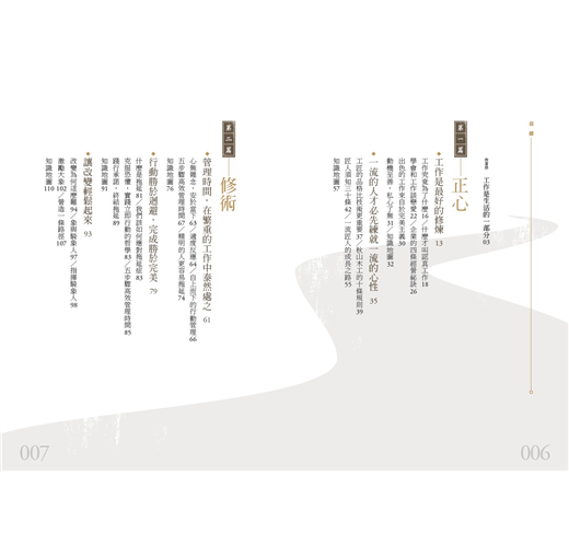 「在讀這本書之前,我先問了問自己,工作對我來說意味著什麼?是獲取必要生存資源的方法?是實現人生價值的途徑?還是讓人生充實而有意義的生活?讀完全書,我找到一個相對確定的答案,那就是把工作當成一種修行,就能獲得與之相關的意義。本書提供了不同的修行方式去改善工作中『不快樂』的問題。完美的狀態,應當是在工作的過程中感到幸福。能被肯定,被期待,被嘉許。專注工作,擁有獲得感和幸福快樂,也許這就是工作的意義,也是工作和修行的目的。」──之子之折