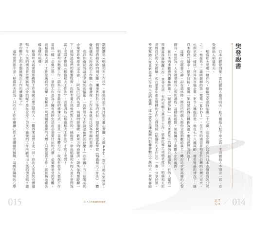 「這是一本關於自我成長書籍的大總結,把一個人的自我成長從內而外體現在工作上,從自己心理的改變開始,到實際工作會遇到的困難與盲點,再更進一步拓展到合作與管理,甚至到創業思維。十四本看起來沒有關聯的經典書,透過作者樊登的整理,最終前後貫串連結在一起,讓你一次讀完這些書籍最重要的精華,幫助我們確認自己目前所處的階段,克服自我成長的瓶頸。」──財經作家/Mr.Market市場先生