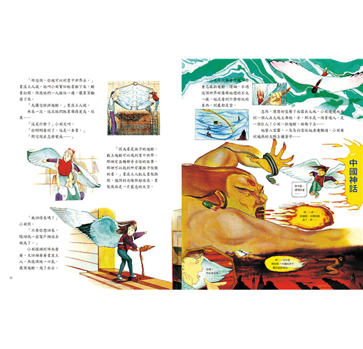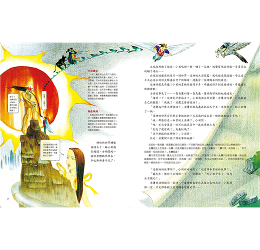 本書將引領小朋友跟著「小羽」展開想像的翅膀,一起探訪古老而美麗的中國神話,暢談充滿哲學趣味的伊索寓言,再坐上飛毯去尋找一千零一夜裡的神奇油燈。而圓桌武士、羅賓漢等遊俠騎士,和中國西遊記的孫悟空、三國演義裡的英雄好漢,在戰亂中展現的驍勇鬥智與俠義精神,更是令人拍案叫絕。