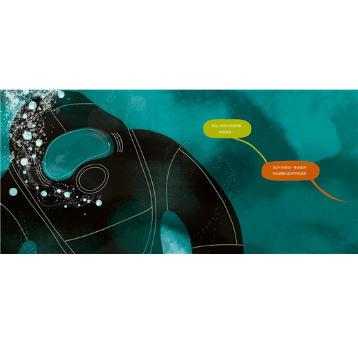 繪本《世界上最孤獨的鯨魚》是「52赫茲」相關的最新創作,我特別喜歡這個作品,不僅因為它是繪本,而是因為此書的圖文並未刻意以大量的字句煽動讀者的情緒,相反的,文圖節制而沉靜,不使讀者胸臆間的寂寞受外力鼓脹、而致難以呼吸。故事的最後幾頁,作者將發言權交給那隻鯨魚,讓讀者試著以鯨魚的角度來看孤獨,是相當機智的安排。
