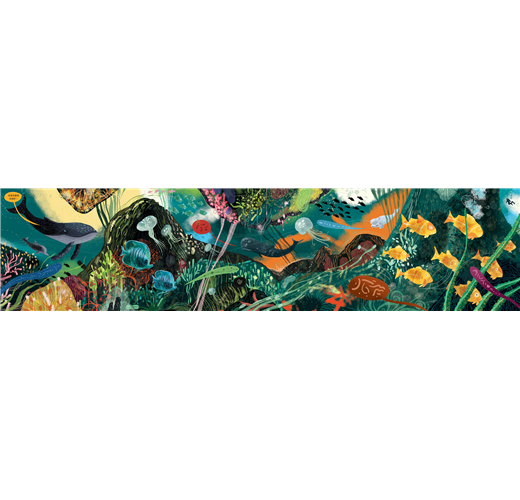 本書的繪畫風格寫實且充滿藝術感,一幅幅藍色深海畫面,以及最後一頁超過100公分的巨大海底全景圖,繽紛熱鬧,令人驚豔與讚嘆。