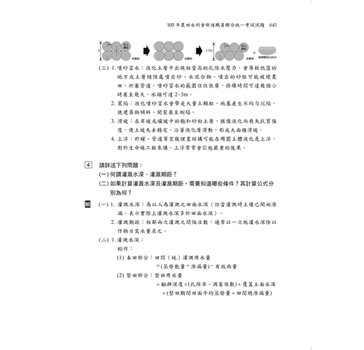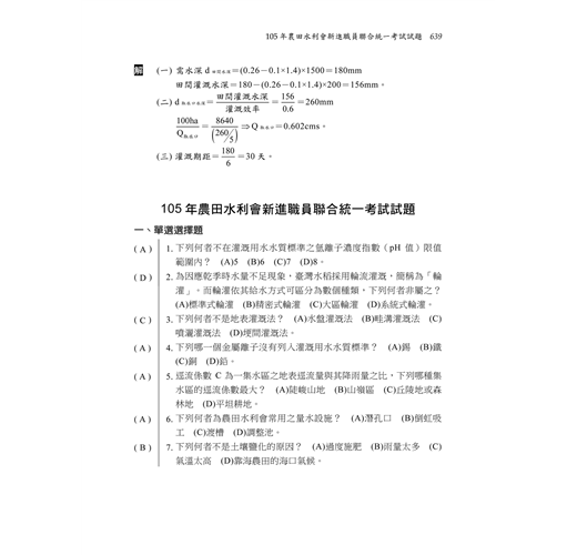 作者精心彙整常考之必考名詞及公式,可檢視自我學習效果,使考生能實務地瞭解灌溉排水原理和觀念並加以熟記,考試時能夠信手拈來,輕鬆找到解題關鍵。