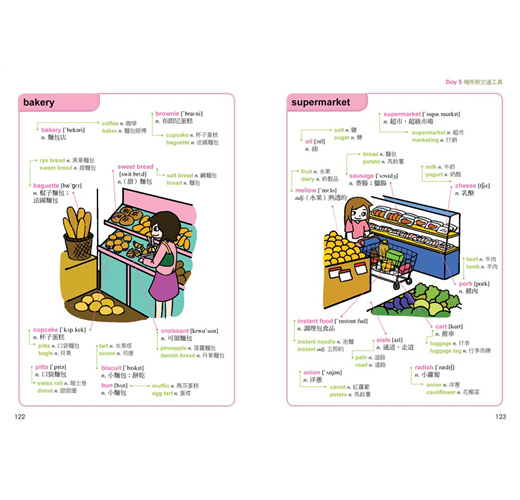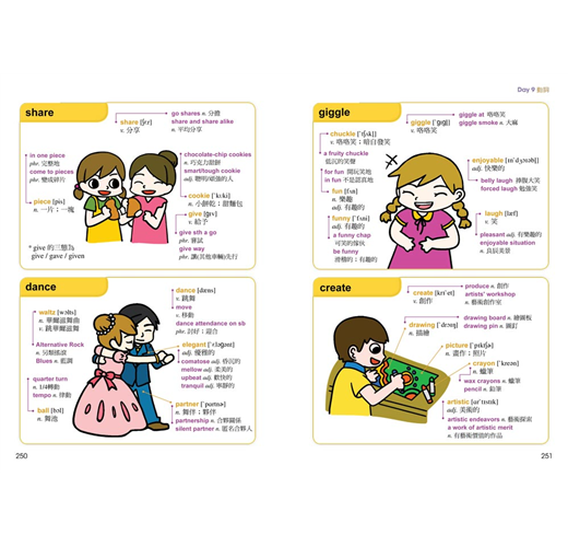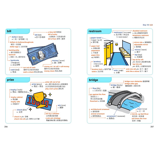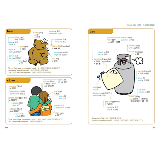 本書由專職ESL教師親自編撰,有效活用情境圖解,實際運用單字。選用生活延伸最實用的情境延伸單字,搭配插圖,以視覺連結大腦深處,快速牢記無壓力。真實情境圖解,再以主題延伸單字,以最輕鬆的聯想方式學習單字。