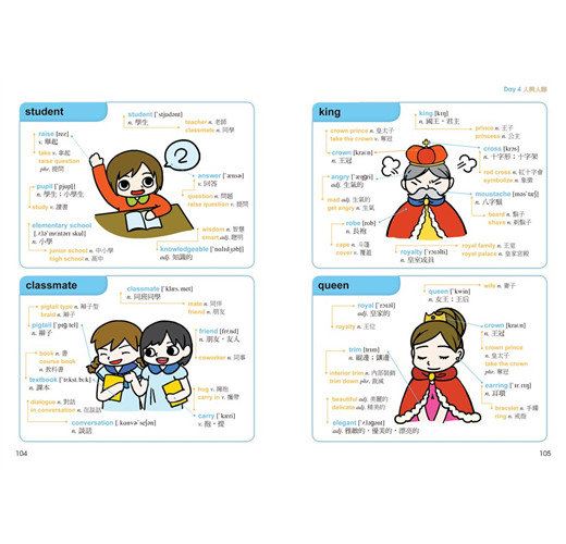 從幼稚園開始學習新知識的時候,看最多的就是故事書。沒有來自外界的壓力,也不會感到無趣,同時達到了「大量閱讀」的核心目的。藉由不斷閱讀去從文字中學習,再透過不斷練習後慢慢精進自身的英文實力。將文字轉換為圖像記憶,讓你的想像力跟著文字一同奔騰在英語單字的國度。