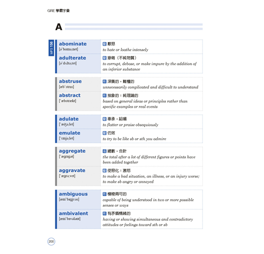 因此,GRE考試中所出現的字,絕非大多數人所想的無邊無際,因為「藉由字彙考倒人」,不是這個考試的本意。而且,GRE在2011年改制後,現行新制已經大幅刪減一些不常在學術文體中出現的冷僻字彙(過去常出現於舊制的類比題中)。現行GRE考試所測驗或出現的字彙群,其實和美國高中生申請大學時要考的SAT / ACT考試有極高的重複性。所以我們可以說,在某種程度上,學術字彙是「有一定的範圍的」。筆者負笈西雅圖華盛頓大學、賓州大學、哥倫比亞大學的求學過程中,也的的確確在期刊、原文教科書、學術演講中觀察到:GRE words are ubiquitous!(GRE字彙無所不在!)