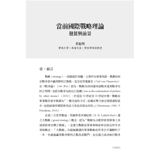 面對這樣一個沒人說得準的國際局勢,研究者在國際理論與戰略理論的基礎上,解析這一年來國際戰略的各種轉換與變動。台灣一直被認為是沒有國際觀的國家,透過這樣的學術交流研討,打破了台灣是一個「國際沙漠」的困境,這種拋磚引玉的作法,必然會激發更多研究者的興趣,讓台灣的國際研究重新步上正軌。