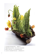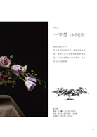 有了這10個美學元素當作準則,在構思創作時就能浮現大致的輪廓、或適合搭配的花材、器皿與背景。且看謝垂展運用這些元素融入在作品中,既有適合居家、贈禮的小型花藝,也有造型藝術般的結構大作。書中並介紹脫胎自古典油畫中的新風格潮流的自然花藝:一字型、X型、U字型、S型、放射米字型、綜合花型等……加上色彩、選花、花器的變化,古典的新派浪漫由此而生!