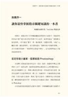 初看此書,會覺得本書作者是針對股市初學者而寫,因為內容非常淺顯易懂,再加上搭配大量的圖畫,一度讓我覺得這是一本關於股票投資的基礎書籍。但越往下看,越會發現,作者的投資方式異常扎實,因為他所談的內容,是專業且成功的投資人才懂的投資觀念與方法。而作者用圖畫與淺顯易懂的方法表達,讓我體會到作者的用心良苦,也讓我感覺本書就像是我所創作的《看新聞,買飆股》的初階版一樣。