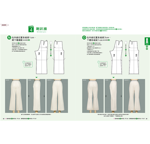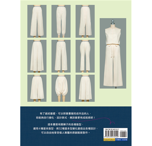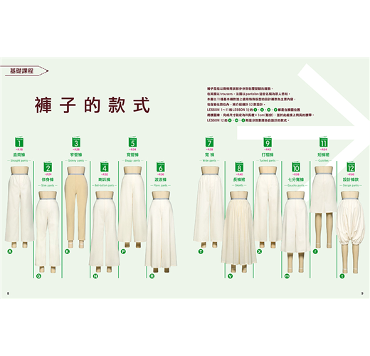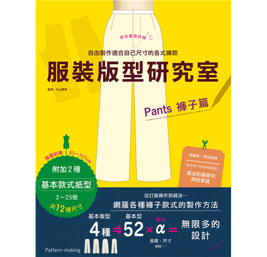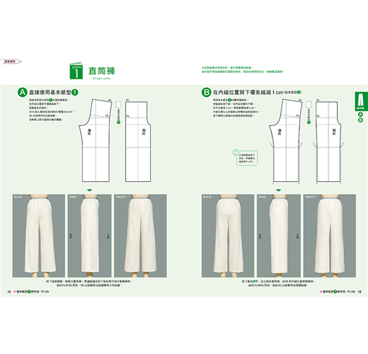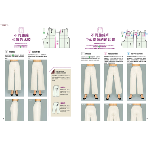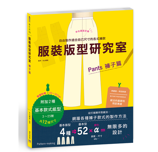 2.這個系列適合有縫紉基礎的人,可以最快找到想要的版型,並依照個人喜好做設計上的修改。製作服裝時,若能順利完成打版,就是成功了一半,接下來只要縫合本體和安排口袋、鈕釦等細節即可做出最適合自己的褲款。