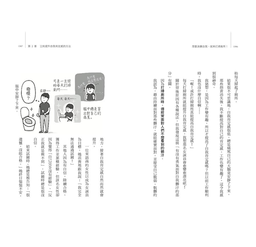 我以為沒自信的人比較謙虛,所以會變得比其他人更美麗,但其實我的內在依舊醜陋,而且現實生活中什麼都沒改變。不論我多努力都不被認可,我以為努力認真地埋頭苦幹,獲得周遭人的信任,就可以擁有自信,實際上卻不然。而且,若抱持著「自我肯定感低」的自己而努力,似乎做任何事都無法完成,只會半途而廢。