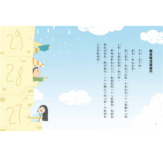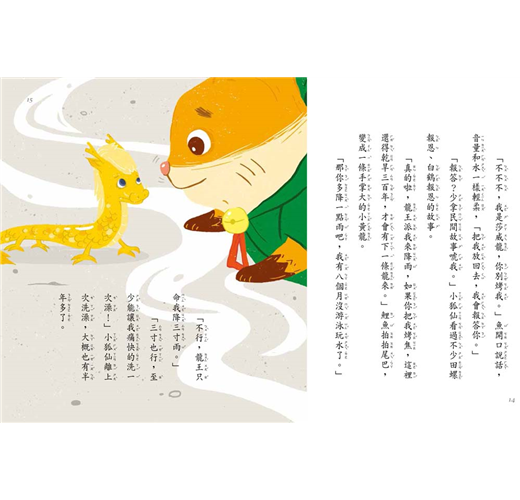 小城已經八個月沒下雨了!大河變小河,小河變沙灘,水庫乾涸,所有的水井也都渴了。這麼下去不是辦法,胖胖狐仙決定去一趟龍王府。龍王說,他早就派了一條龍來降雨啊!那麼,那條龍去哪兒了?原來,他派來的小黃龍有懼高症,不敢飛上天,沒辦法降雨。小狐仙不相信,對小黃龍說:「你吹牛不打草稿,龍會騰雲駕霧,是仙界飛行第一高手,哪有龍不敢飛上天的?」……