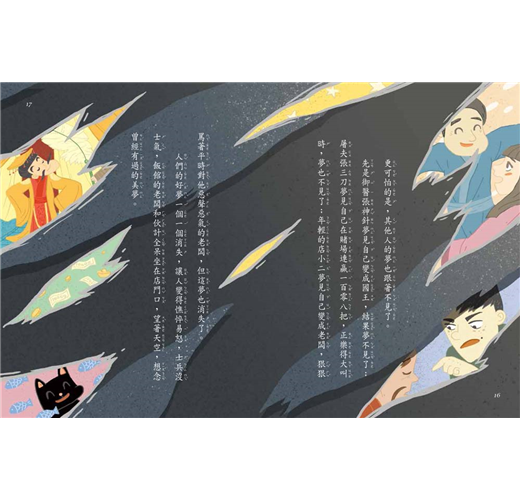 快樂公主是個愛笑的人。天上的雲飄過,她笑了;地上的花綻開,她笑了;身旁走過一個農夫,她也笑了,她說農夫身上的泥土氣味好香。然而某一個清晨,公主的笑容卻不見了,因為她的美夢不見了!從那天開始,公主的美夢一個個憑空消失,就像被人偷走一樣。不僅如此,其他人的夢也接二連三的跟著不見了。國王派人駐守在大街小巷,決心把這個偷夢賊繩之以法……